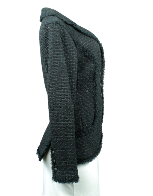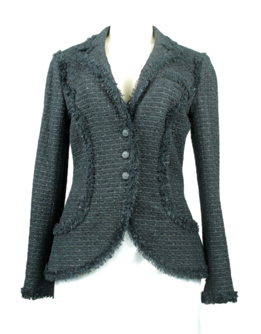 CHANEL 06C Black Fringed Bouclé Tweed Blazer