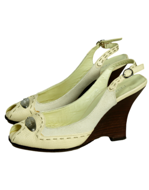 FENDI Leather Colorblock Pattern Slingback Sandals