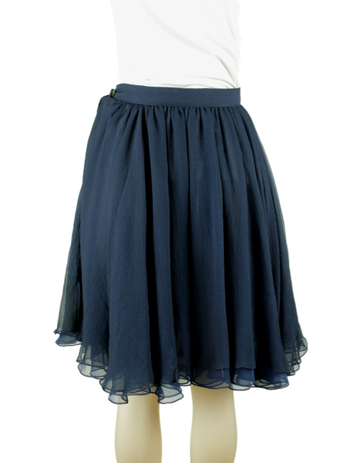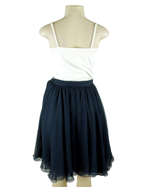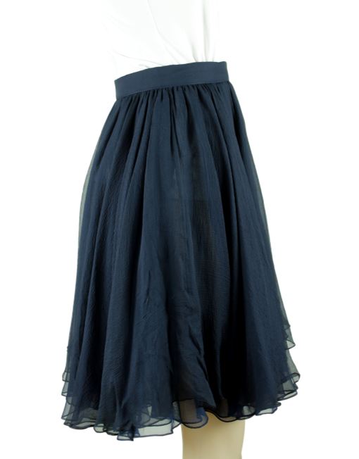 Design Details: Navy Ralph Lauren purple label sheer a-line two layer skirt has side closure.